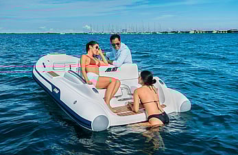The ABJET 430 XP is the most complete and modern jet tender in the 4 meters range. With a deck design unlike any other in its segment, this tender provides a seven (7) person capacity, ultimately maximising deck space, optimising boat stability, and promoting better weight distribution to obtain the highest performance.